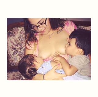 Mi hermano, Javier, estaba con dos de mis sobrinos en casa de mis papás para que su esposa pudiera tener tiempo para estudiar. No es costumbre que la más pequeña esté lejos de mamá ya que es lactada a tiempo completo. Así que, ya estaba cansada y aunque se tomó toda la leche que papá tenía para ella necesitaba ese ratito de teta para dormir. Reunidos en el balcón sostenía a la pequeña Cascada y estábamos jugando con Tiaguito y mi otro sobrino. Cuando mi hermano me dice: «la nena tiene sueño, si quieres, pégatela». Para ser sincera, por un micro segundo me aterré. Y, aunque ya había pegado a otro bebé que no era mi hijo, nunca lo había hecho con Tiago presente y con una criatura sangre de mi sangre. Después, en cuestión de nada internalicé y decidí que tanto tiempo defendiendo estas prácticas debía ser fiel a mis ideales. Así que, teta afuera y sobrina pegá. Tiago miraba y lo único que se me ocurrió fue invitarlo a que se pegara a la otra. Y así fue. Un momento que recordaré por siempre y que atesoraré. Otra historia que contar cuando estos niños crezcan.